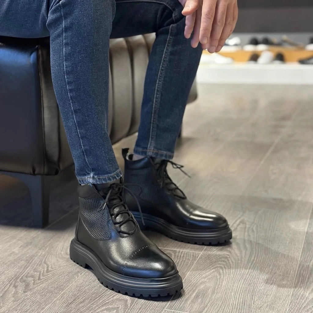 Siyah Hakiki Deri Süet Detaylı İthal Taban Bot
