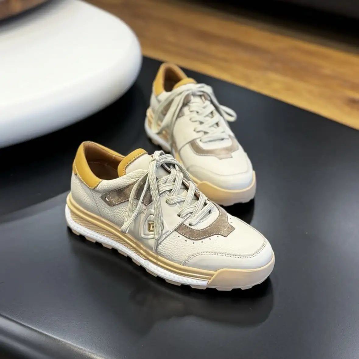 Bej İthal Deri Sneaker – EVA Taban Günlük Erkek Ayakkabı