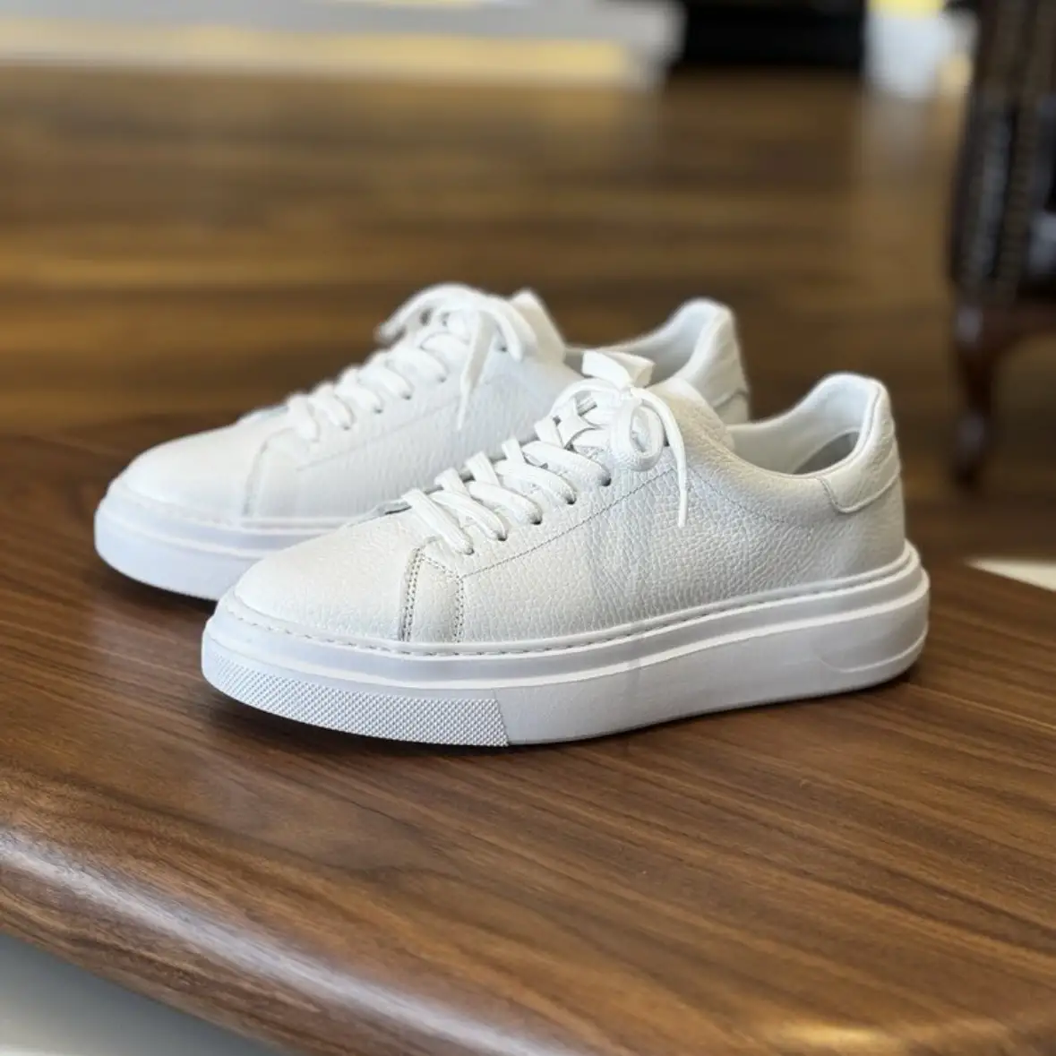 Hakiki beyaz deri ve hafif eva taban yapısıyla maksimum konfor sunan modern sneaker modeli. Günlük kullanım ve casual kombinler için ideal bir seçimdir.