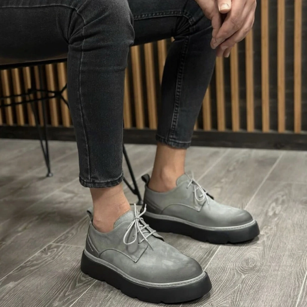 Erkek Gri Deri Ayakkabı – Kalın Taban, Modern Günlük Tasarım