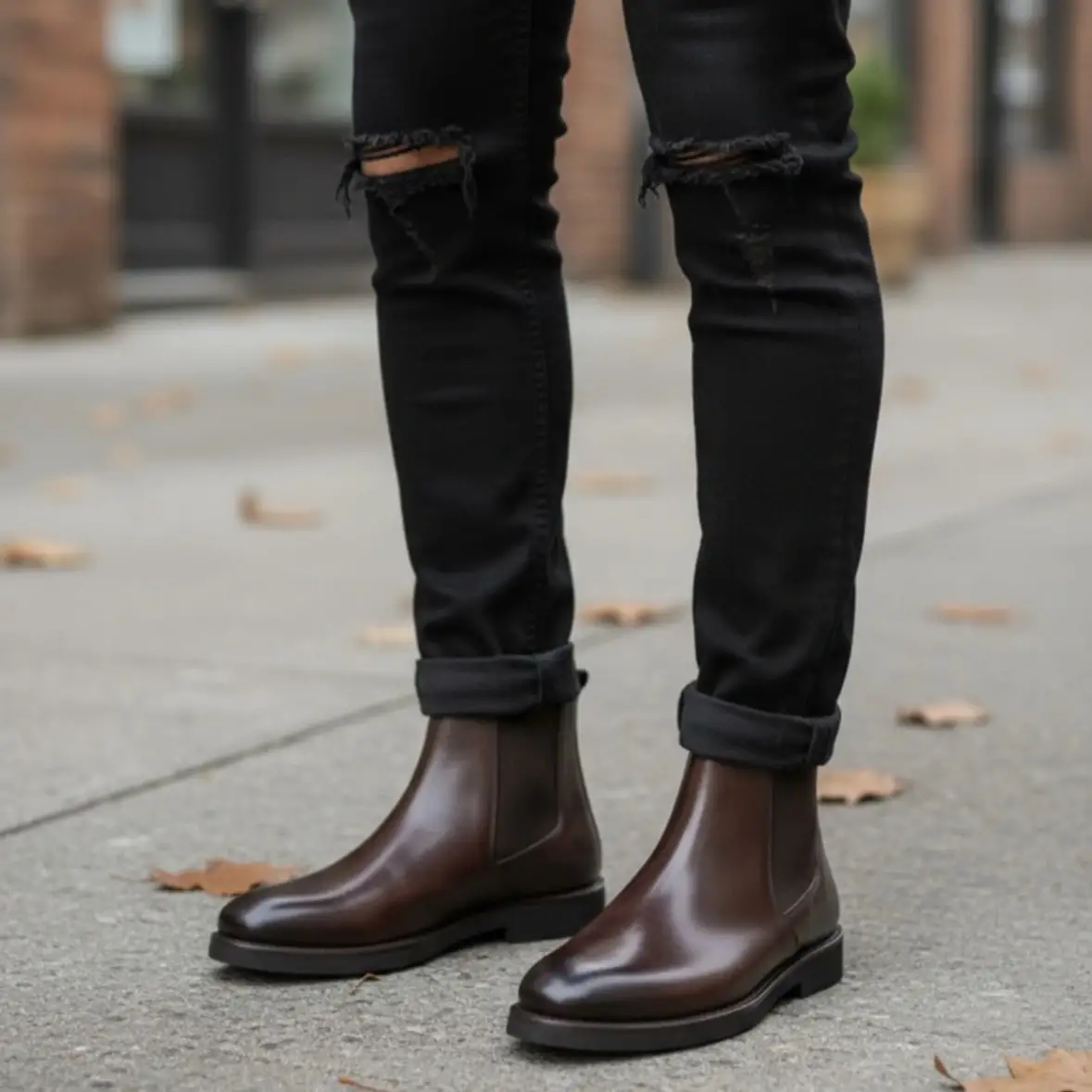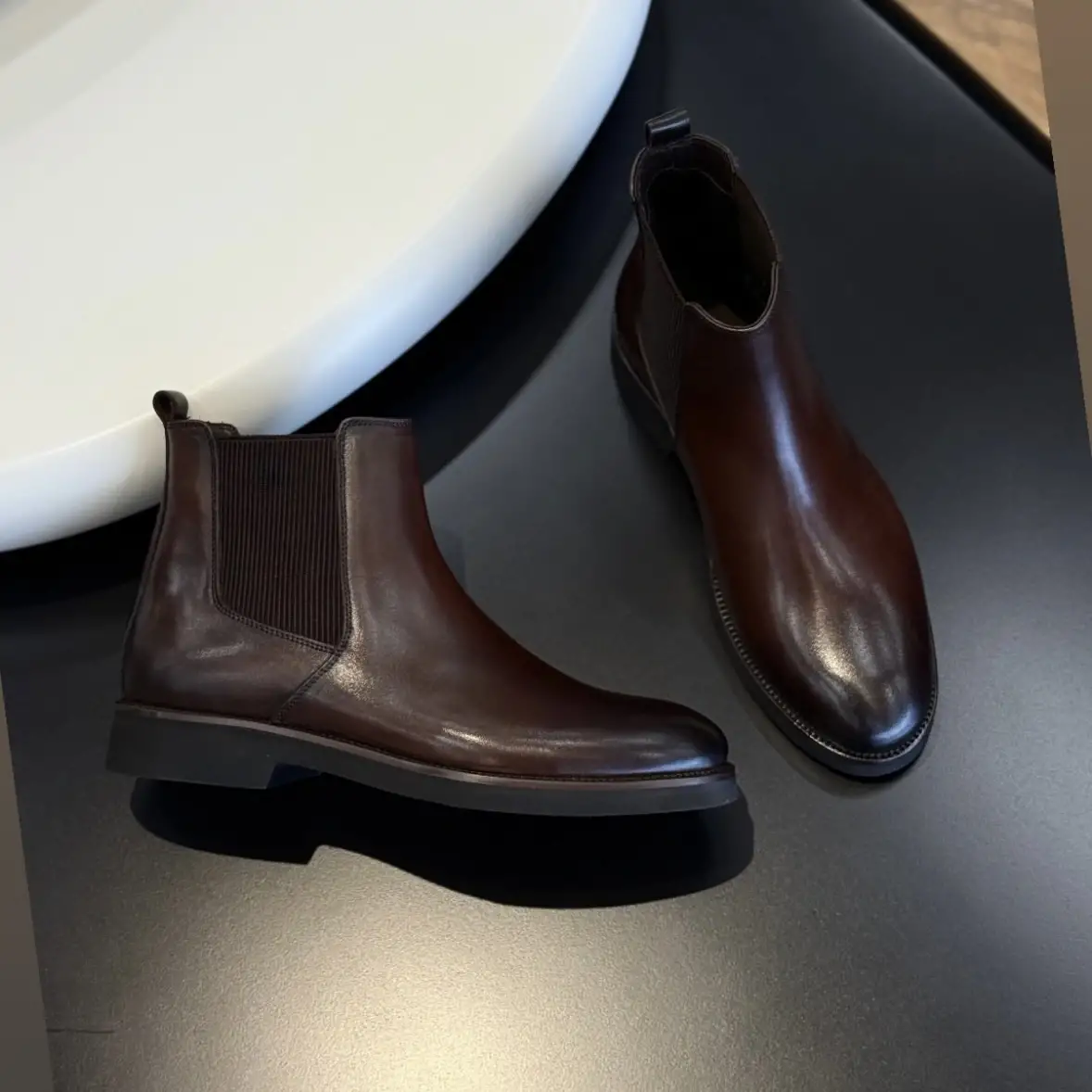 Hakiki deri yüzey, esnek yan lastik detayı ve hafif tabanıyla hem günlük hem şık kombinler için ideal premium erkek Chelsea bot modeli.