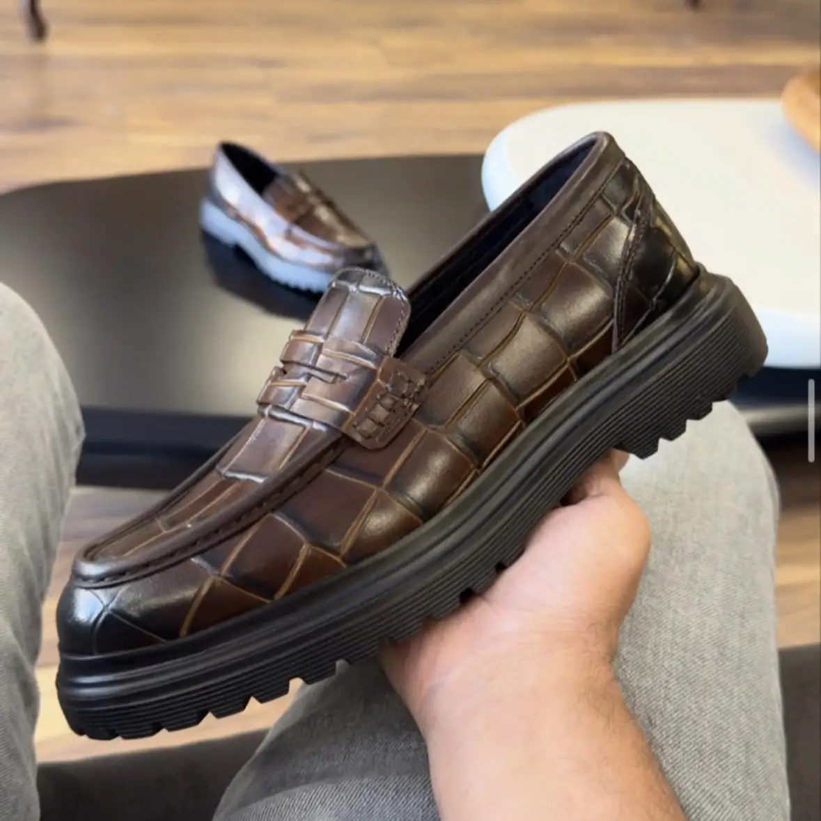 Premium kroko desenli deri yüzey, kolay giyilen loafer tasarımı ve kalın kaymaz tabanıyla hem şık hem konforlu erkek modelidir.