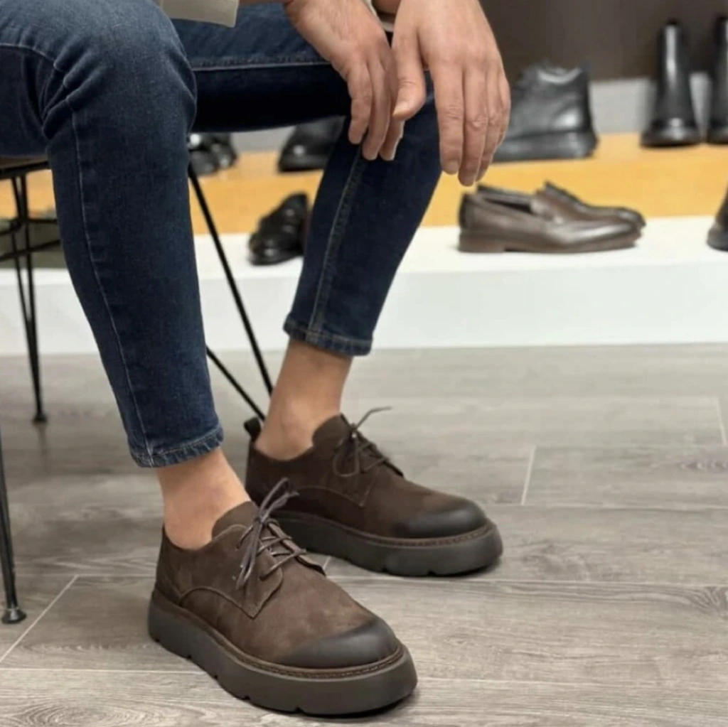 Günlük kullanımda hem şıklık hem de rahatlık arayan erkekler için tasarlanan bu kahverengi nubuk ayakkabı, yumuşak dokusu ve modern görünümüyle öne çıkar. Kaliteli nubuk yüzeyi uzun süre formunu korur, doğal dokusu ise ayakta konforlu bir his bırakır.