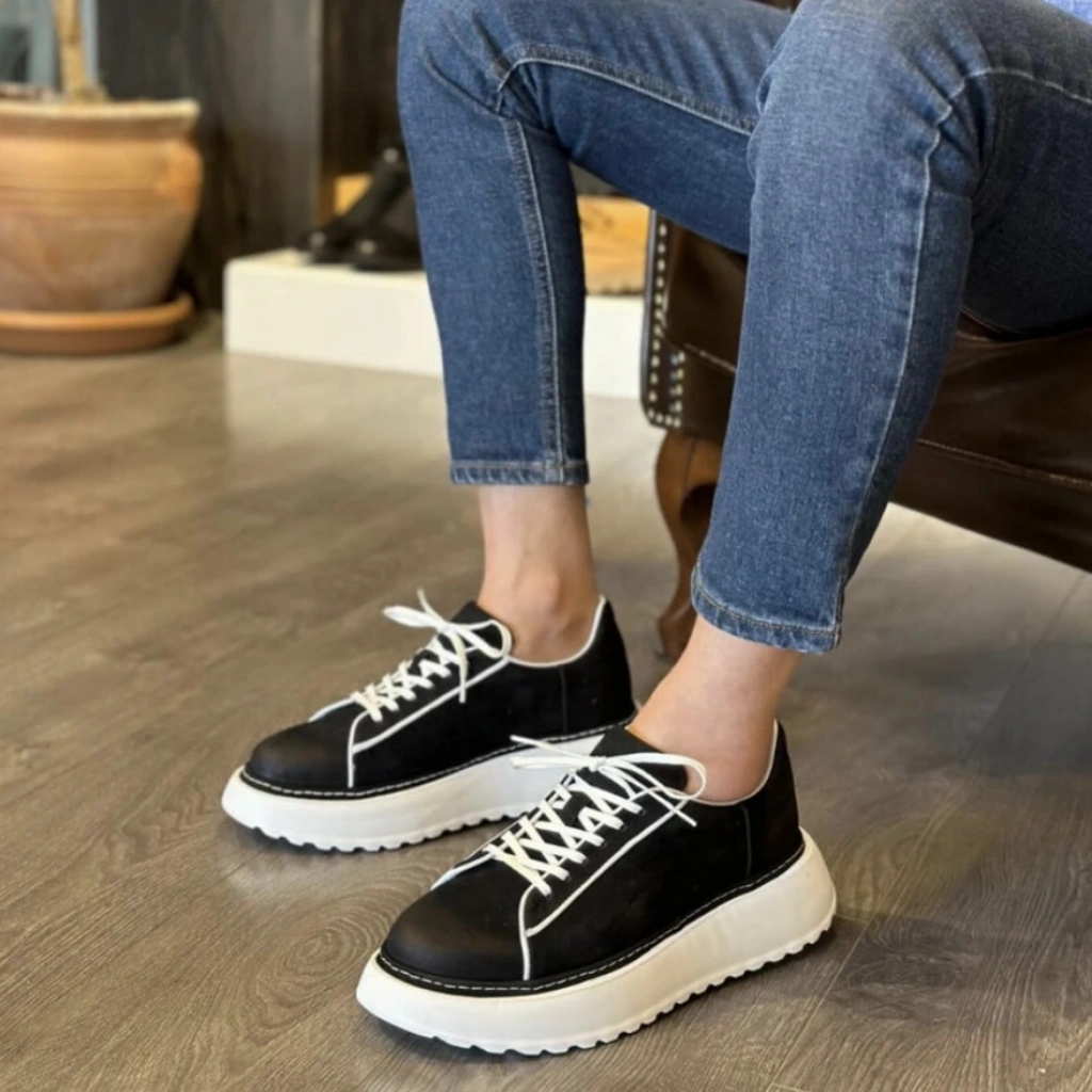 Erkek Siyah Deri Sneaker – Kalın Ultra Hafif Taban