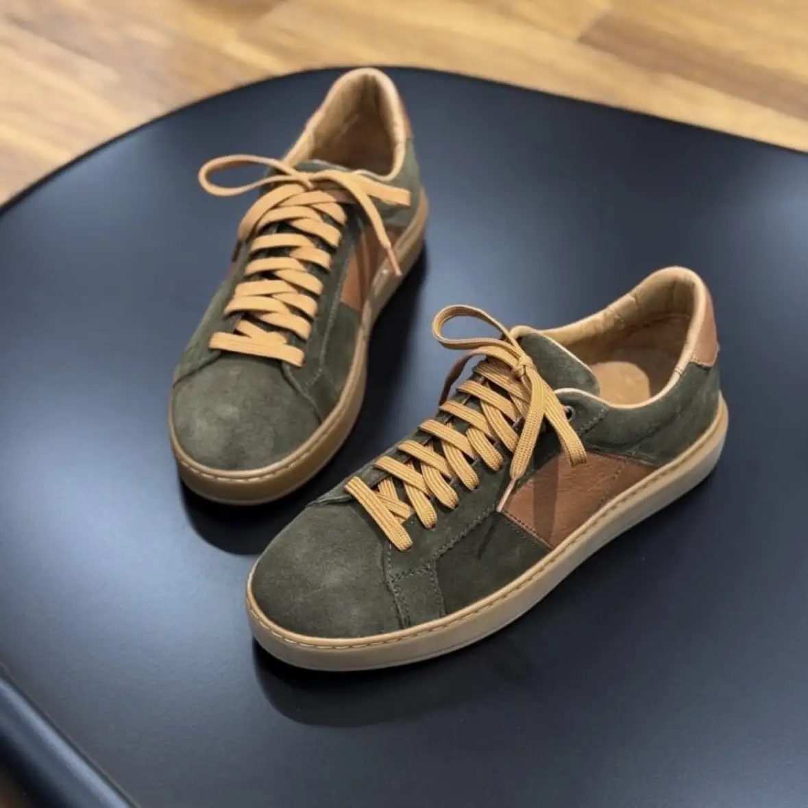 Haki Süet Deri Günlük Erkek Ayakkabı – Taba Detaylı – Hafif Taban