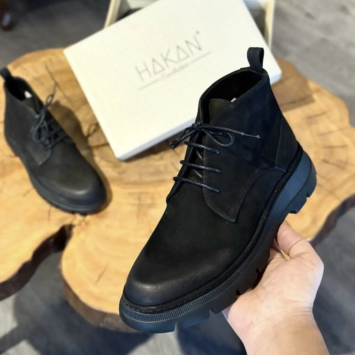 Hakiki Deri Siyah Bağcıklı Erkek Bot