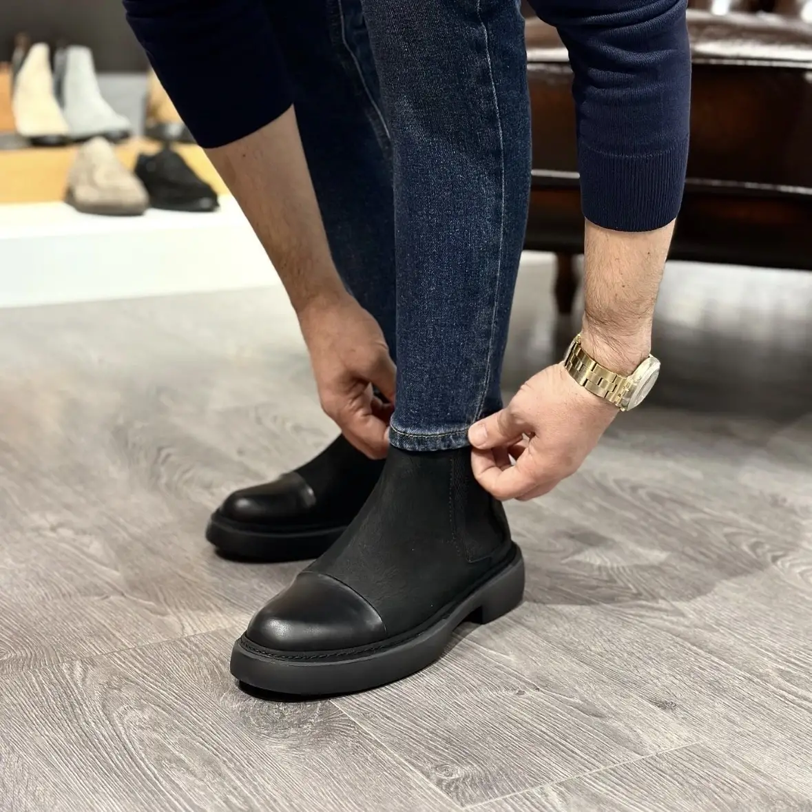 Siyah Nubuk Hakiki Deri EVA Taban Chelsea Bot