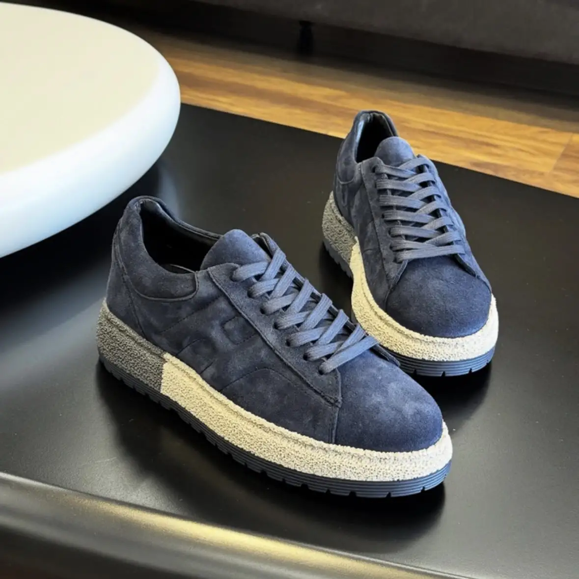 Lacivert süet deri yüzey, modern spor tasarım bir arada. Günlük kullanım için ultra konforlu erkek ayakkabı.