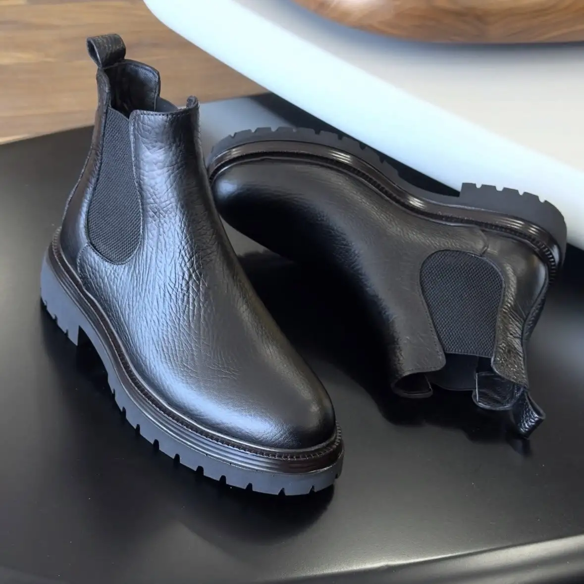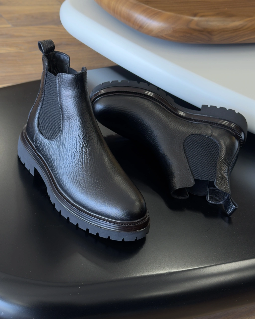 Siyah Nubuk Hakiki Deri EVA Taban Chelsea Bot