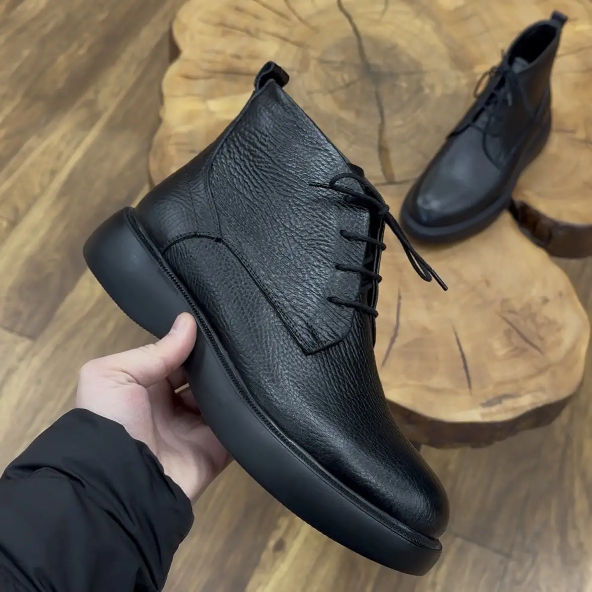 Siyah Hakiki Deri Erkek Bot – EVA Hafif Taban