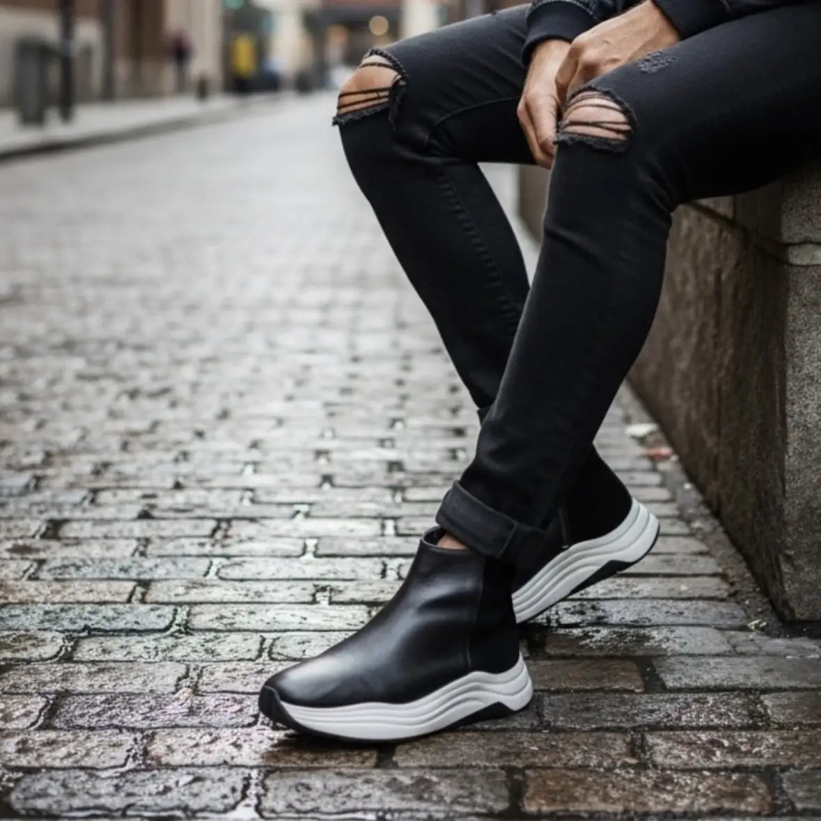 Siyah Nubuk Hakiki Deri EVA Taban Chelsea Bot