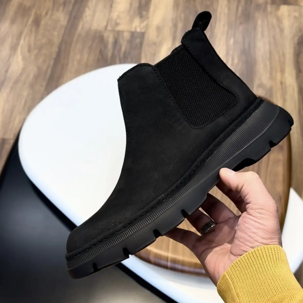 Siyah Nubuk Hakiki Deri EVA Taban Chelsea Bot