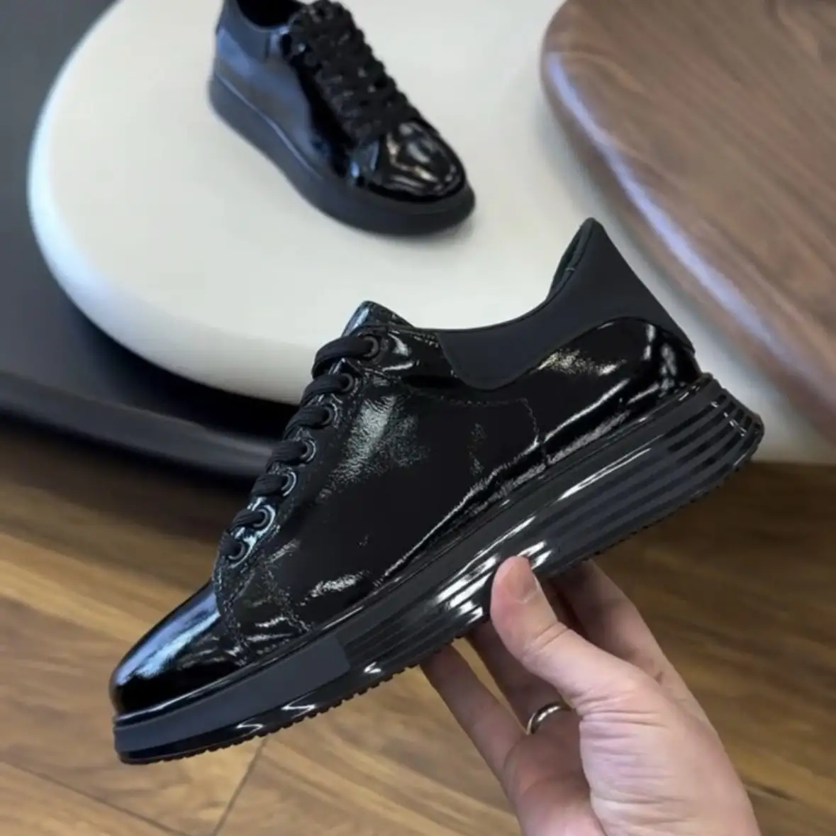 Parlak rugan hakiki deri, konforlu taban yapısı ve modern tasarımıyla günlük kullanıma uygun şık erkek spor ayakkabı.