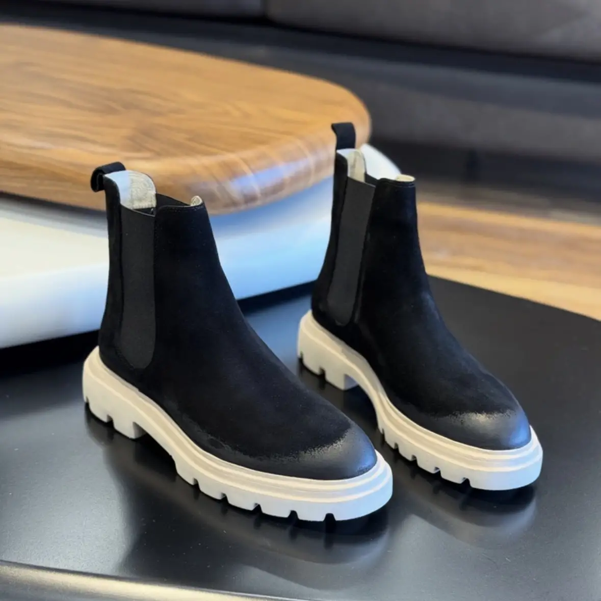 Siyah Nubuk Hakiki Deri EVA Taban Chelsea Bot