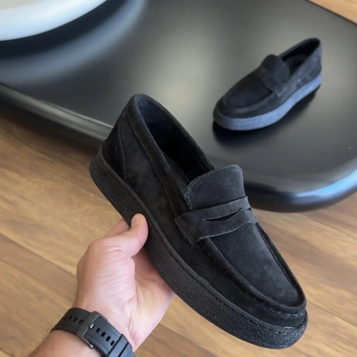 Hakiki süet deri, hafif taban, modern loafer tasarım. Günlük kullanım için konforlu ve şık bir model