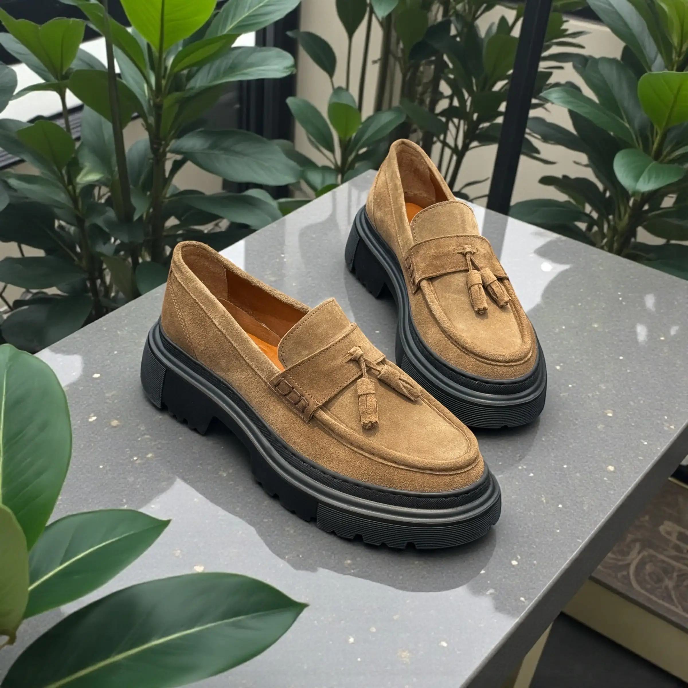Taba Süet Hakiki Deri EVA Taban Püsküllü Loafer